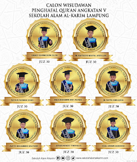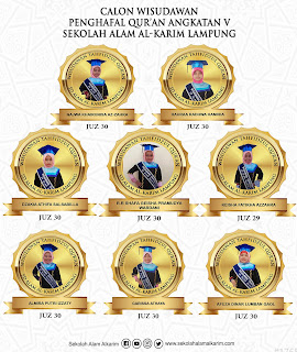SD Alam Al-Karim akan melakukan Wisuda Akbar Tahfidzul Quran Angkatan ke- V di Swiss bel-hotel lampung pada Jum’at 26 April 2019. wisuda tahun ini diikuti oleh 76 peserta dari ananda yang memiliki hafalan Juz 27, 28, 29 dan 30 yang terdiri dari kelas 1 sampai dengan kelas 5.