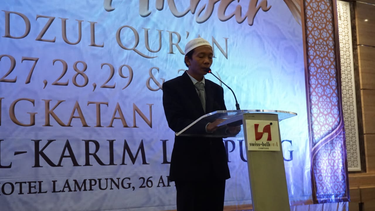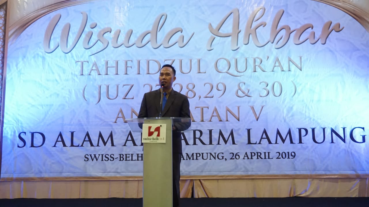 Selesai Tausyiah, kemudian dilanjutkan dengan pembacaan susunan acara kegiatan wisuda Akbar Tahfidzul Quran Angkatan V SD Alam Al-Karim Lampung oleh Ayu Savitri Aisyah Yuda dan Oktia Wulandari selaku pembawa acara.