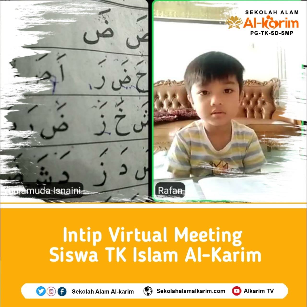 Pandemi Covid-19 masih mewabah khususnya di provinsi Lampung, Selasa 27 Oktober 2020 TK Islam Al-Karim lakukan virtual meeting via Zoom dengan fasilitator pengampu. Kegiatan ini diakukan sebagai salah satu sarana belajar TK Islam Al-Karim di masa pandemi.